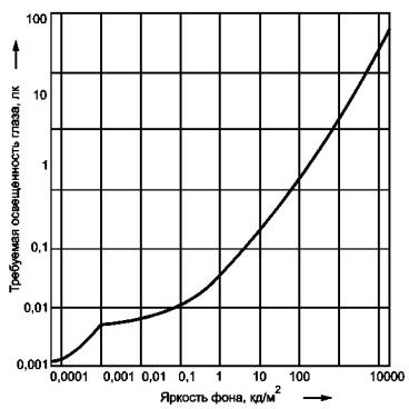 Рисунок 1 - Соотношение между требуемым освещением глаза и яркостью фона