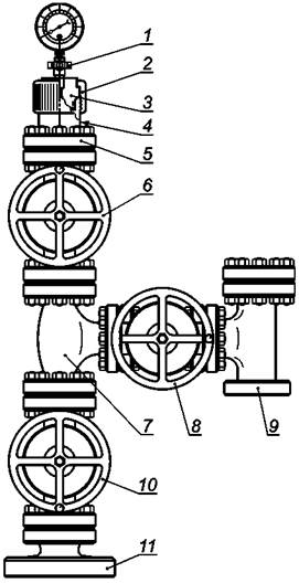скважинным предохранительным клапаном; 8 - боковой выход на шпильках; 9 -