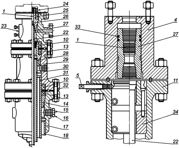 6 - уплотнение подвески НКТ; 7 - подвеска НКТ с удлиненной выточкой и каналом управления
