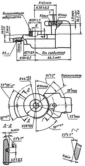 1 - предохранитель неправильного соединения; 2 - минимальное свободное пространство для прохода предохранителя неправильного соединения другой головки