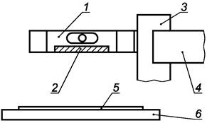 1 - клеммная колодка; 2 - боковая изоляционная стенка; 3 - монтажное основание; 4 - фиксирующие части; 5 - папиросная бумага; 6 - сосновая доска