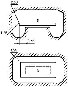 0,75; 1,25; 2,50 - расстояния от края поверхности S до границы зоны досягаемости