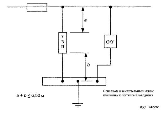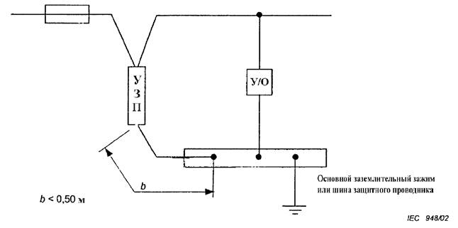 Рисунок D.1 - Установка устройств защиты от перенапряжений (УЗП), испытанных по классу I, II и III