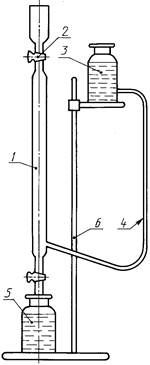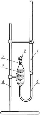 Раствор кислоты заливается в резервуар 3 (рисунок A.1) так, чтобы полностью была заполнена бюретка 1 до наивысшей отметки и часть раствора еще осталась в резервуаре 3.