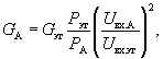 Коэффициент усиления антенны - отношение квадрата напряженности поля, создаваемого данной антенной, к квадрату напряженности поля, создаваемого эталонной антенной, при этом предполагается, что мощности, подводимые к обеим антеннам, одинаковы, а коэффициент полезного действия эталонной антенны равен единице.