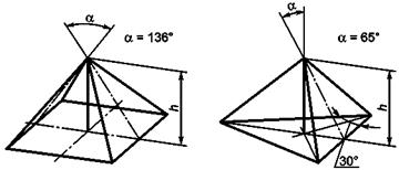 Эти различия связаны со скруглением вершины наконечника, в случае с пирамидой Виккерса, на перемычке, и отклонением от указанного угла наконечника, что относится к обычным производственным допускам. Кроме того, действительная площадь контакта изменяется в связи с изношенностью вершины наконечника.
