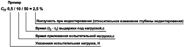 Глубина индентирования под действием испытательной нагрузки |