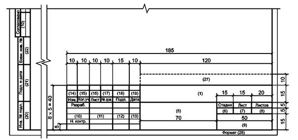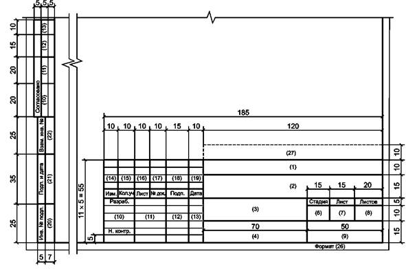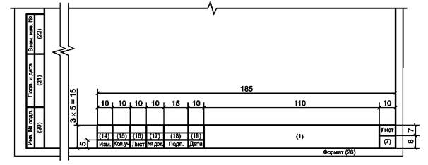 - поле 15 - для дополнительных граф основной надписи в соответствии с приложением Ж. Допускается сведения, содержащиеся в этих графах, приводить в другой форме в соответствии с требованиями, установленными в стандартах организации.