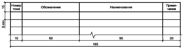 - в графе «Наименование» - наименование документа (тома) в точном соответствии с наименованием, указанным на его титульным листе;