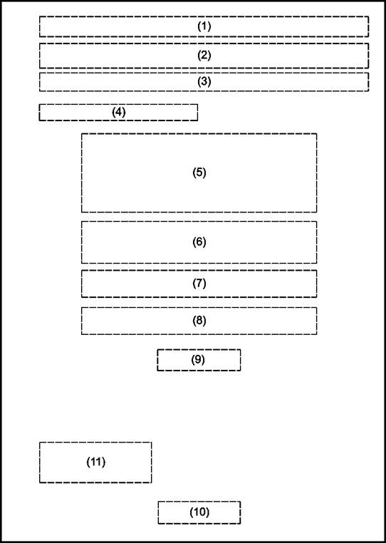 Н.2 Размеры полей 1 - 11 устанавливают произвольно; линии полей, указанные в форме, не наносят; номера и наименования полей не указывают.