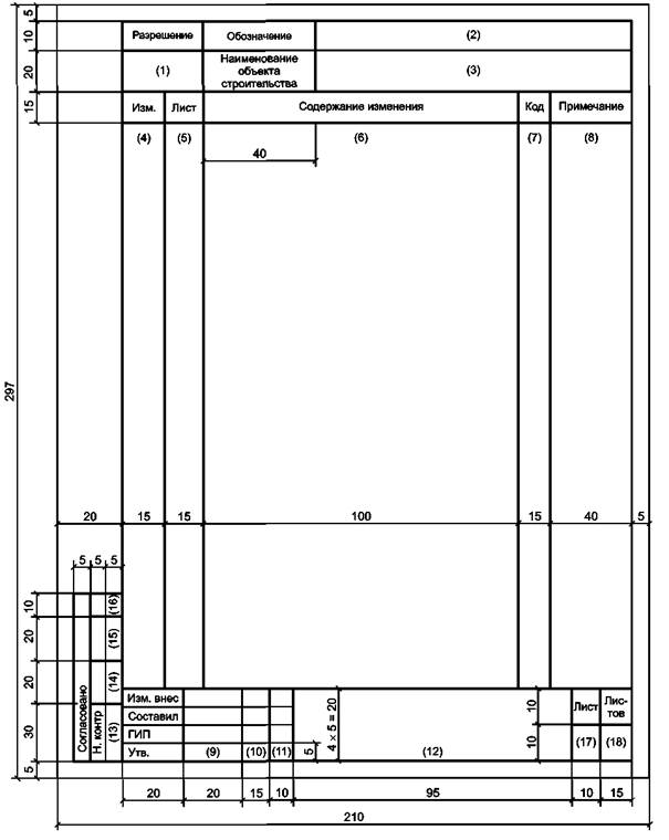 - в графе «№ док.» - обозначение разрешения на внесение изменений в соответствии с указаниями в приложении Л;
