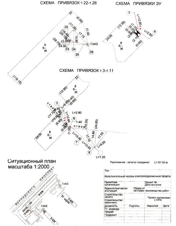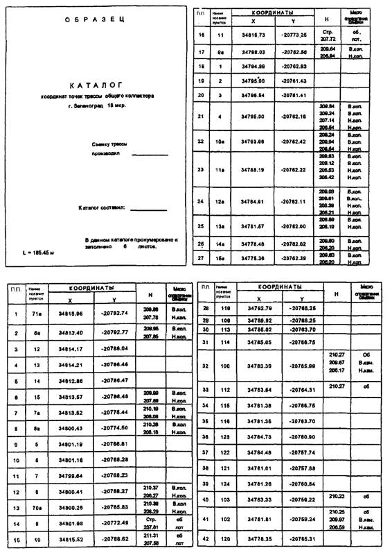 В результате вычисления геодезических разбивочных работ должны быть оформлены разбивочные чертежи, каталоги координат и отметок исходных пунктов и каталоги (ведомости) проектных и фактических координат и отметок, чертежи геодезических знаков, пояснительная записка.