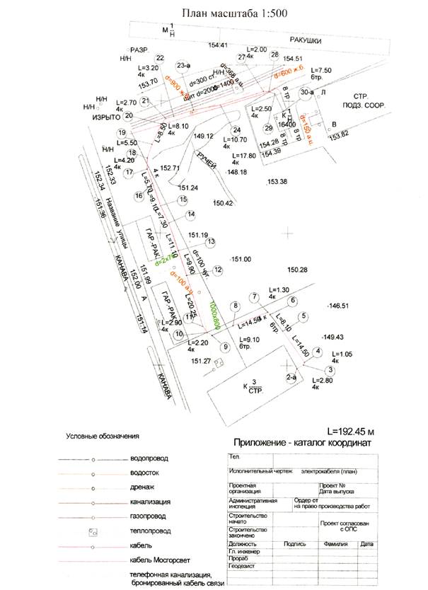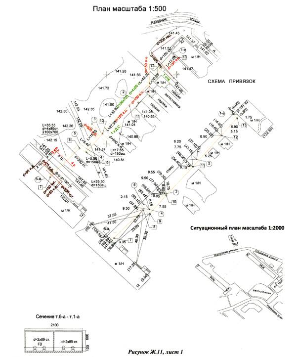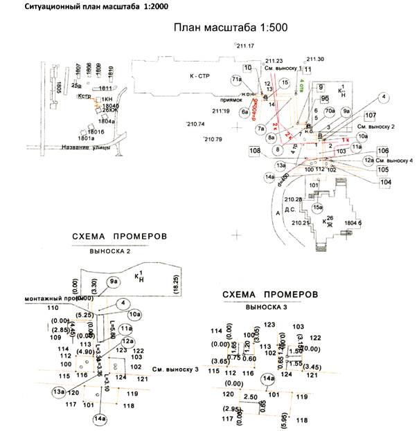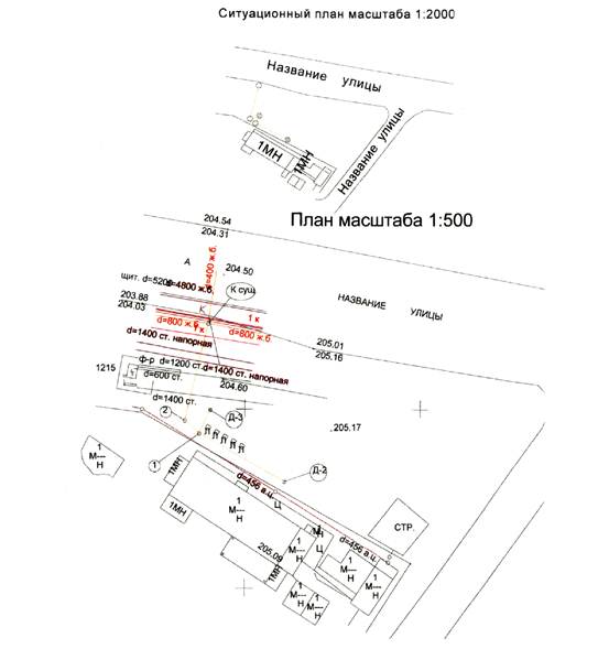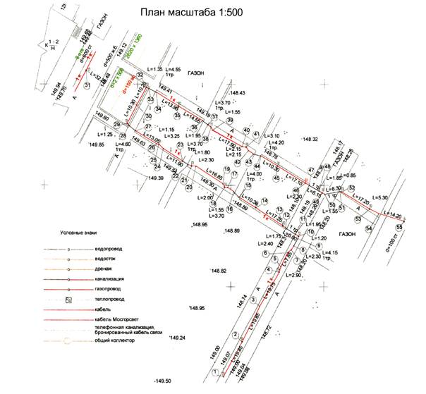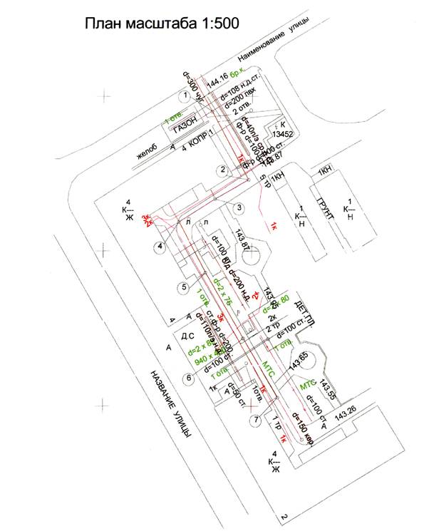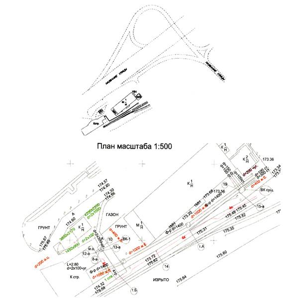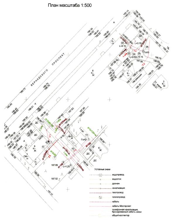 проектного и существующего размещений зданий (сооружений) и инженерных сетей на строительной площадке;