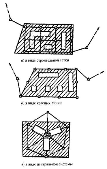 5.7 Плановую разбивочную сеть строительной площадки следует создавать в виде: