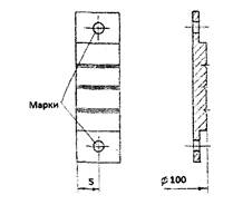 в) Марка для измерения кренов и отклонений от вертикали (при наклонном)