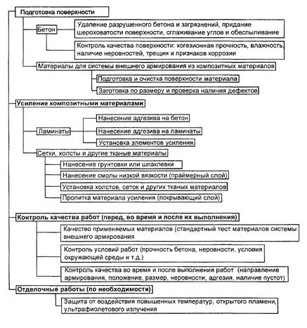Алгоритм выполнения работ по усилению или восстановлению железобетонных конструкций внешним армированием из композитных материалов