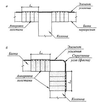 3.3 внешнее армирование (железобетонной конструкции) композитными материалами: Установка наклеиванием на железобетонную конструкцию изделий заводского изготовления из композитных материалов (ламинатов) или послойное наклеивание термореактивными адгезивами изделий из непрерывного углеродного или стеклянного волокна (холстов, сеток и других тканых материалов) с последующим отверждением и образованием однослойного или многослойного композитного материала.