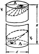 1.1. Настоящие указания распространяются на проектирование круглых и прямоугольных силосов для сыпучих материалов, как отдельно стоящих, так и сблокированных (силосные корпуса), с отношением высоты стены силоса Н (считая от верха воронки - рис. 1) к меньшему поперечному размеру силоса, превышающим 1,5. (Для силосов диаметром 18 м и более это отношение может быть меньше 1,5.)