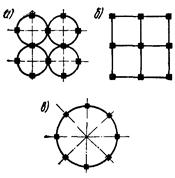 В отдельных случаях, например при увеличении емкости существующих силосных корпусов, допускается применение шахматного расположения (рис. 3).