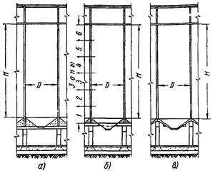 в) для цемента отдельно стоящие и сблокированные силосы диаметром 3; 6 и 12 м: