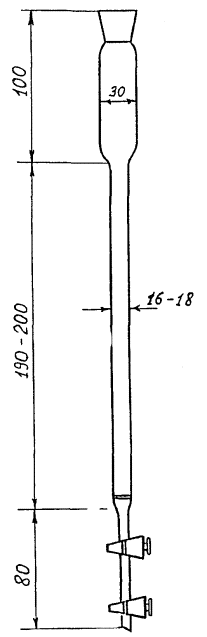 4.1.20 Колонки стеклянные ионообменные с краном и пористой пластиной высотой 50 - 70 см или бюретки с прямым краном вместимостью 50 см3 с прокладкой из стеклоткани или стекловаты - 2