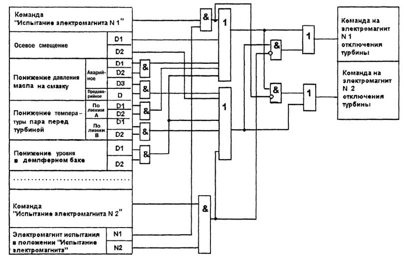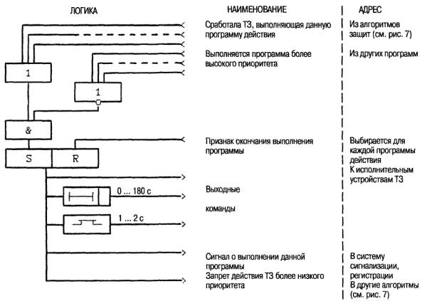 2.8. Действие защиты заключается в формировании дискретных команд на изменение состояния коммутационной аппаратуры электродвигателей собственных нужд, запорной и регулирующей арматуры. Совокупность этих команд и является программой действия данной защиты. Возможно, что одна и та же программа выполняется при срабатывании нескольких защит.