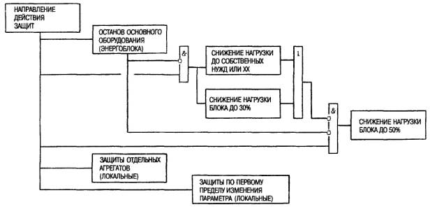 Направление действия защит определяется опасностью возникшей аварийной ситуации: ТЗ может отключать все оборудование или отдельный агрегат или осуществлять разгрузку оборудования на различную глубину (рис. 1).