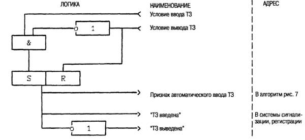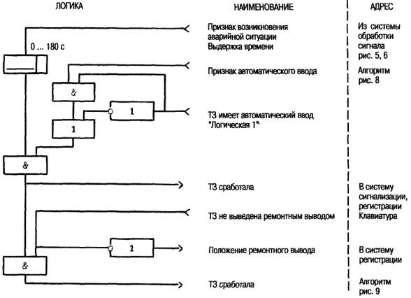 Ввод-вывод минимальных защит осуществляется либо специальными ПЗ при достижении определенных этапов пуска, либо устройствами автоматического ввода ТЗ. На рис. 2 показан алгоритм такого устройства.