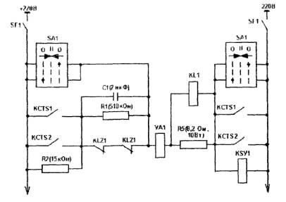 Примечания: 1 Контроль исправности цепей управления YА1 на схеме не показан. 2. Для YА2 и YA.S2 схема выполняется аналогично