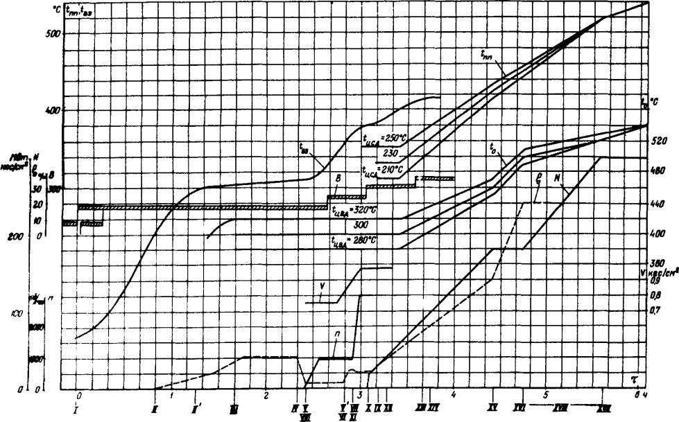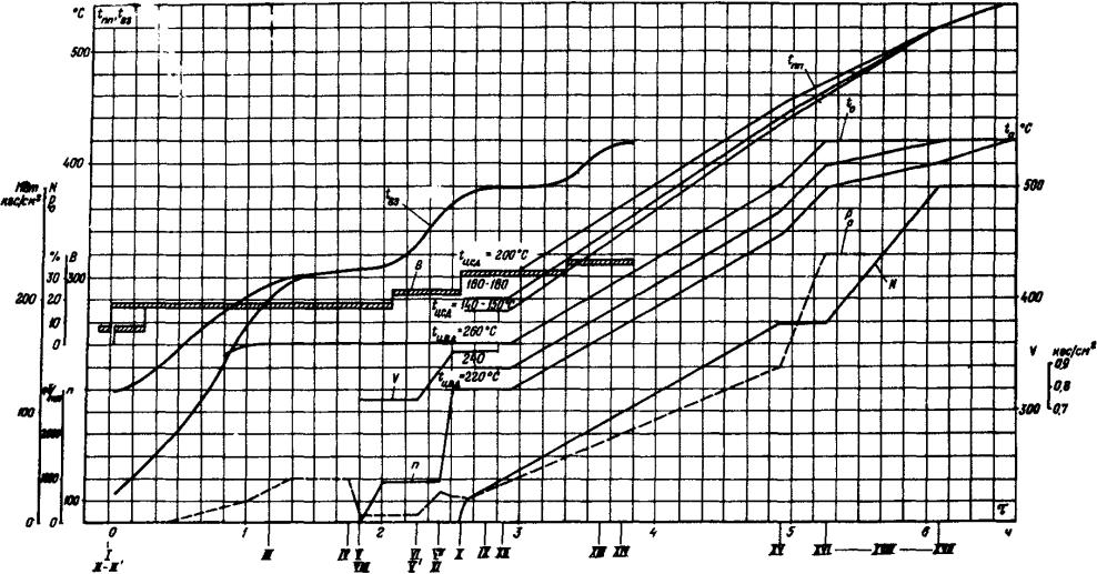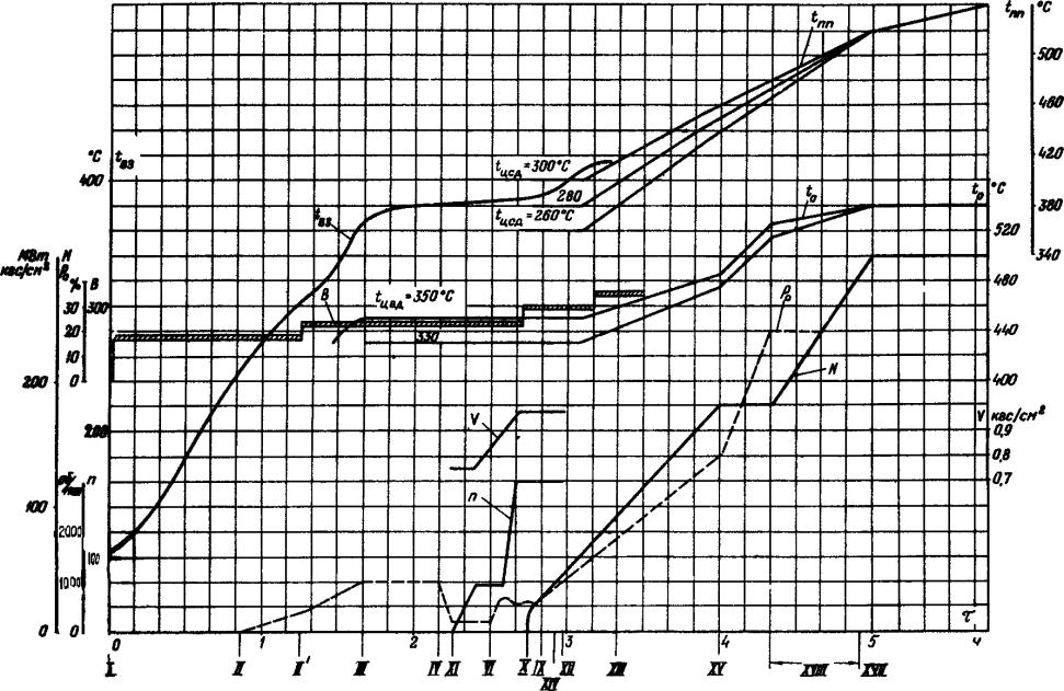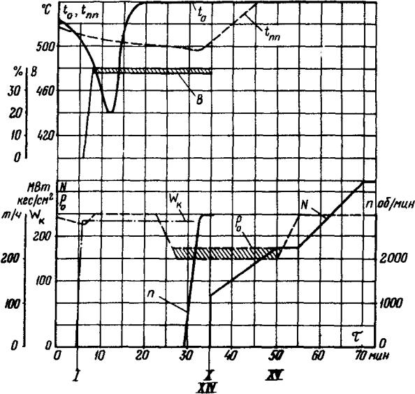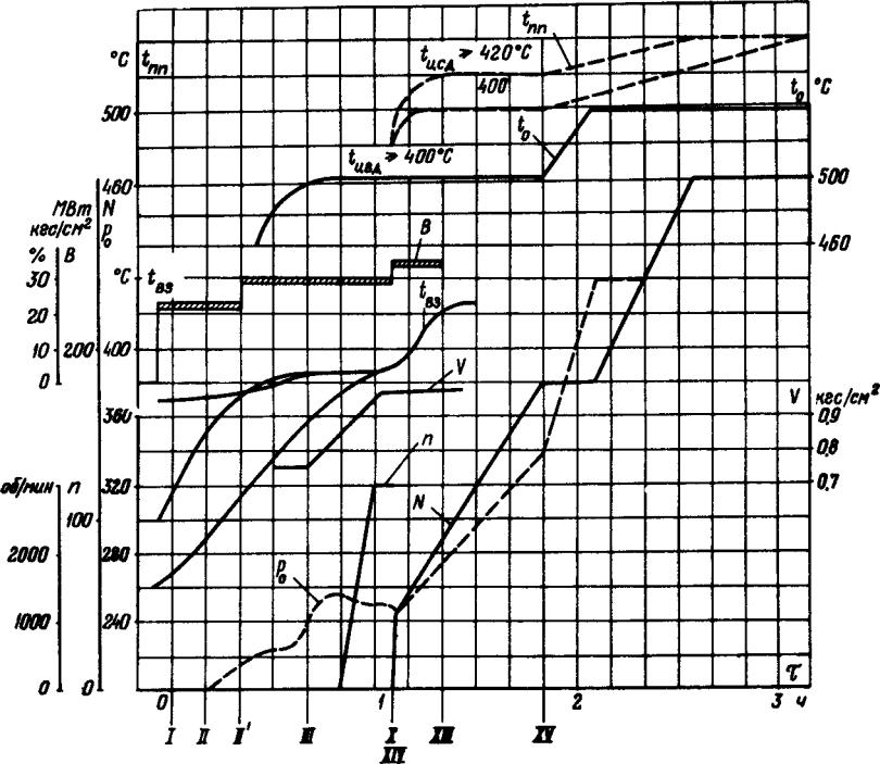 При промежуточном тепловом состоянии турбины, не предусмотренном в графиках-заданиях, пуск блоха производится по графику-заданию для ближайшего температурного состояния ЦСД турбины.