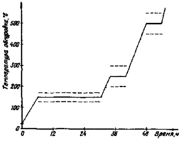 - повышение температуры до 500 ± 50 °С со скоростью не более 30 °С/ч;