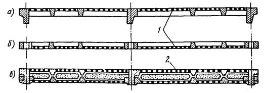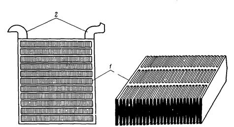 1 - перфорированные свинцовые листы; 2 - активная масса