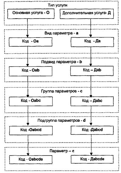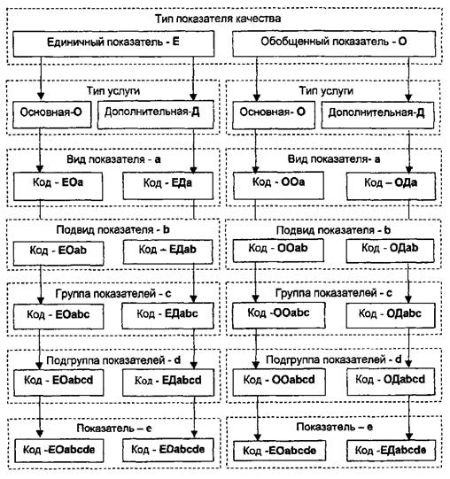Рисунок 4. - Структура кодов единичных и обобщенных показателей качества услуг связи