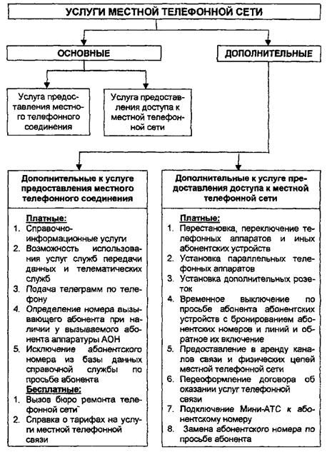 Рисунок 1. - Классификация услуг местной телефонной сети.