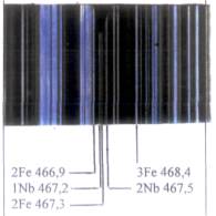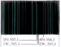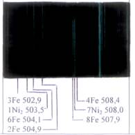Для установления количественного содержания элемента в сплаве пользуются оценкой относительной интенсивности анализируемой линии и линии сравнения.