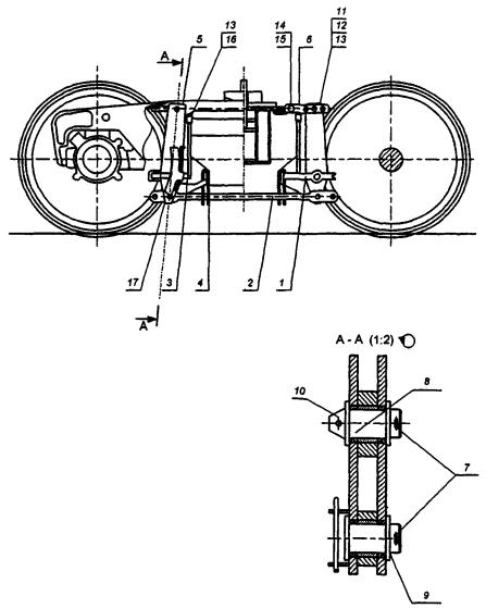 - тормозная рычажная передача, состоящая из рычагов, триангелей с тормозными башмаками и их подвесками;