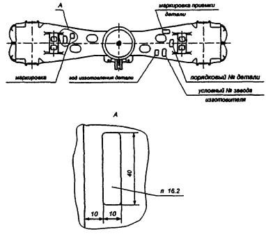 1.3 Составные части и детали тележки должны иметь знаки и клейма, установленные соответствующими чертежами и стандартами, а также коды железнодорожных администраций государств СНГ, Латвии, Литвы и Эстонии согласно альбому «Знаки и надписи на вагонах грузового парка колеи 1520 мм» № 632 ПКБ ЦВ МПС России.