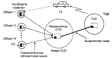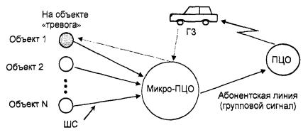 - микро-ПЦО - при наличии в районе нескольких зон, значительно удаленных от городских (районных) ПЦО и обслуживаемых одним подразделением вневедомственной охраны.