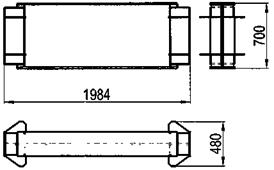 понтон прямоугольный с размерами в плане 42×13.1×2.7 м с восемью шахтами в корпусе для установки в них опорных колонн;