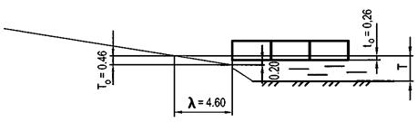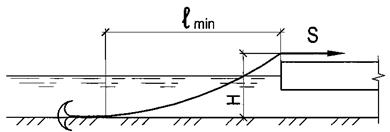 S - путь, пройденный передним концом плашкоута от момента, когда передний конец плашкоута пересекает плоскость уреза воды, до момента всплытия;
