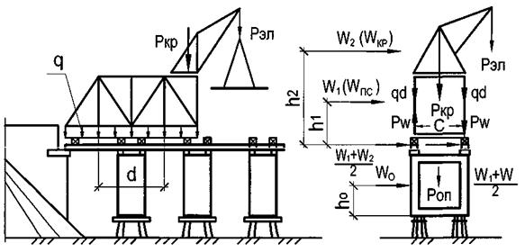 6.5 Нагрузки должны приниматься при расчетах в наиболее неблагоприятных, возможных на отдельных этапах производства работ, положениях и сочетаниях нагрузок как для отдельных элементов и конструкций вспомогательных сооружений, их оснований, так и в целом.