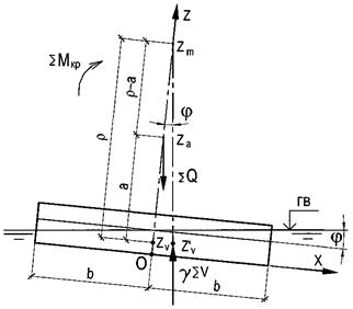 γ ∙ W - сила плавучести (гидростатическая сила, действующая на подводную часть плашкоута), т.