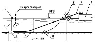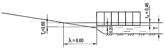 Т - глубина воды в реке в месте спуска плашкоута на воду, Т = t + 0,20, м;