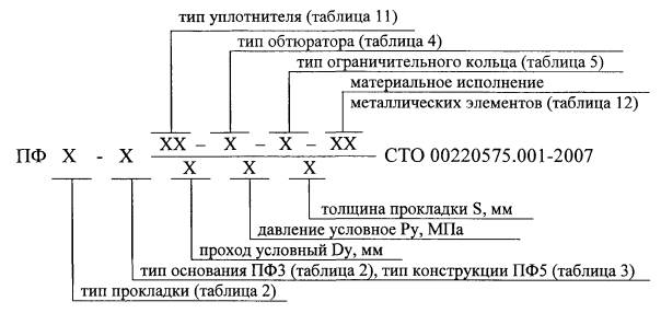 Таблица 2 - Типы прокладок ПФ1 - ПФ4