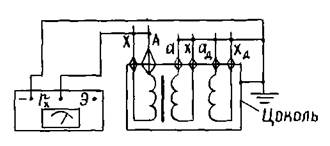 Измерение сопротивления изоляции первичных обмоток трансформаторов напряжения производится мегаомметром на напряжение 2500 В. Схема измерения приведена на рисунке Д.1.