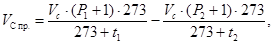 Если емкость воздухосборников (системы) - Vc, начальное (перед отжатием воды) и конечное (после отжатия) избыточное давление в них Р1 и Р2 и соответствующие температуры в них t1 и t2, то израсходованный на отжатие до установленного уровня объем воздуха (м3), определяют по формуле: