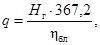h - расстояние от крышки турбины до уровня отжатой воды, м.