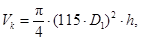 Ш.5.3 Емкость камеры Vk(м3) определяется по действительным размерам проточной части, заполняемой сжатым воздухом при отжатии воды до отметки уровня отжатия. Для сравнения объемов одной камеры при проведении серии отжатий можно пользоваться формулой для приближенного расчета и не учитывающей емкость камеры рабочего колеса турбины и другие емкости, обусловленные конфигурацией проточной части: