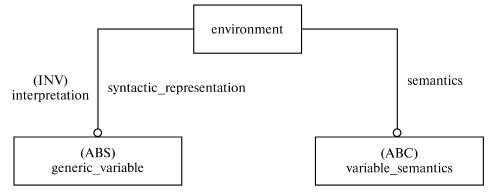 Примечание - В контексте настоящего стандарта объект environment привязывает к объекту generic_variable (синтаксису) соответствующее ему значение (семантику), представленное объектом variable_semantics.