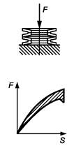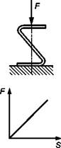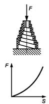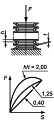 F- нагрузка; s - деформация в направлении действия нагрузки; h, t - характерные размеры блока пружин